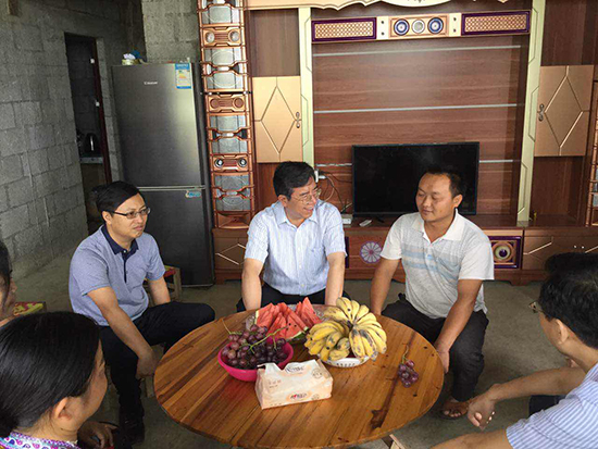8月8日~9日,在民政厅安置办主任夏忠的带领下,民政厅安置办与自治区军安中心党支部代表一行7人组成工作组,深入西林县八达镇旺子村开展“一帮一联”结对帮扶暨“两学一做”学习教育主题实践活动,工作组分头行动,分别来到旺子村半坡屯、新寨屯入户走访结对贫困户,详细了解了家庭、经济和产业情况,认真听取他们在生产生活中存在的困难和问题,了解致贫原因,对当前脱贫攻坚形势和最新精准扶贫政策进行宣传,并与他们共同探讨精准脱贫的思路和措施。
