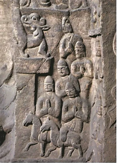 ▲云冈石窟第16—1窟西壁的粟特商队画。(图片来源:人民日报)