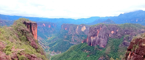 (老君山丹霞地貌灿若明霞,原始森林苍翠欲滴,被誉为“滇省众山之祖”。)
