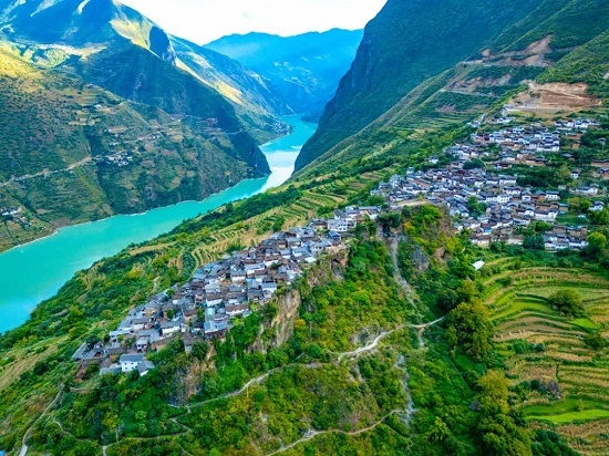(在古城区,金沙江自北向南流淌于崇山峻岭间,诠释着水与山的千年角力。)