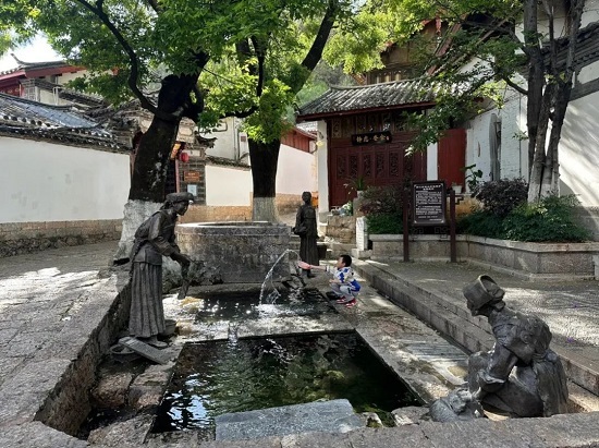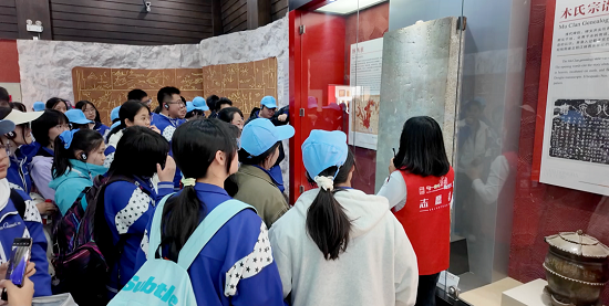 (志愿者为游学学生讲解丽江历史文化。中国社会报记者 周亮 摄)