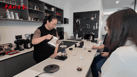(“黄二姐”在自己经营的民宿里,为客人手冲云南小粒咖啡。中国社会报记者 周亮 摄)