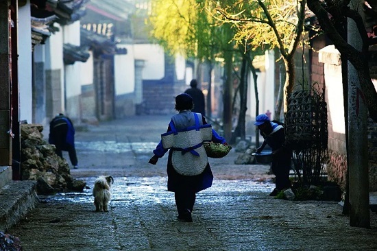 (白沙古镇的清晨,居民们开启一天的生活。)