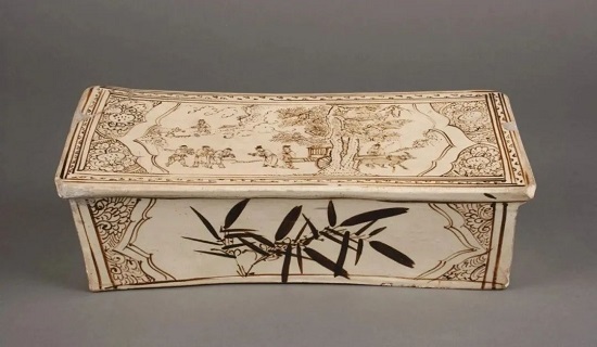 ▲白地黑花“时苗留犊图”瓷枕,元代磁州窑瓷枕的代表作之一,国家一级文物,现藏于邯郸市博物馆。图片来源:邯郸市博物馆