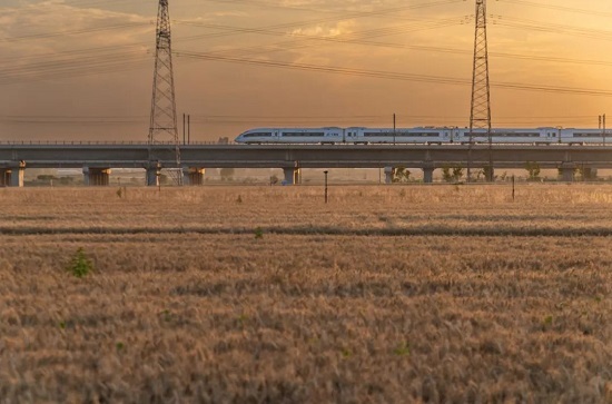 ▲高铁奔驰在邯郸的金色麦田之上。图片来源:视觉中国