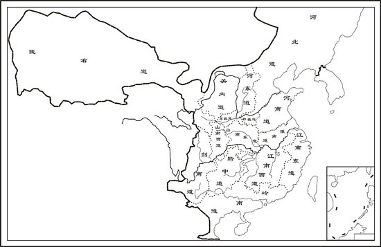 唐朝开国后,又改郡为州。然而,在唐朝兼并各割据势力、重新平定天下后,州的数目大量增长。中央不得不考虑在州县之上设立一级监察区,以监察各地州刺史的行为。贞观元年(627年),唐太宗依据自然地理区域将全国划分为十道,不定期派遣巡察使到各道监察地方官员。为了有效控制地方,开元二十一年(733年),唐玄宗将贞观十道调整为十五道,每道设置采访处置使,负责监察道内州刺史的非法行为,道由此成为正式的监察区。