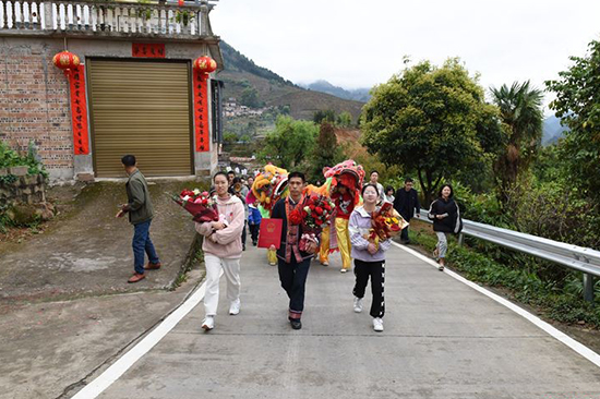 赵进忠获奖回乡,村民们夹道欢迎