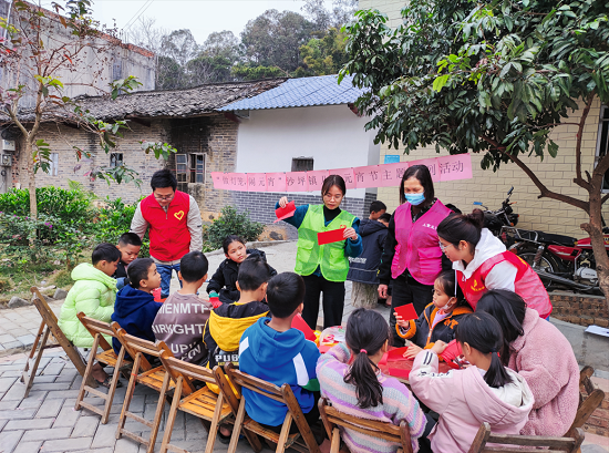 儿童督导员、儿童主任、社工与儿童开展“做灯笼闹元宵”活动