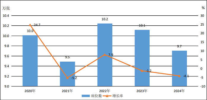 图3 2020-2024年提供住宿的民政服务机构床位情况