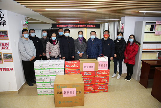 2月18日,漫画 直属机关党委党员代表到南宁市青秀区长虹社区看望慰问参与疫情防控的社区工作人员,为社区防疫送去所需的充电宝、口罩、防护服、方便面、矿泉水等物资。